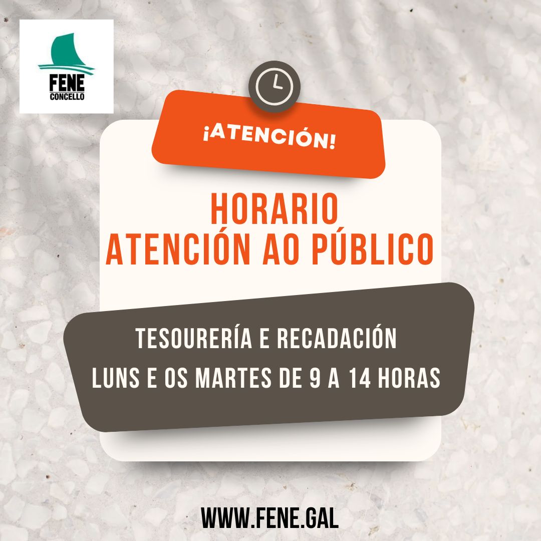 A partir do luns 2 de marzo a atención ao público de tesourería e recadación será os luns e os martes de 9 a 14 horas.