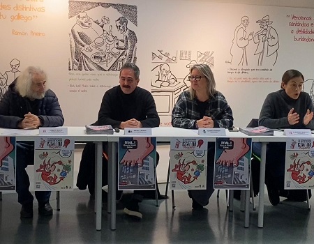 Coincidindo coa conmemoración do seu aniversario, o Museo do Humor Xaquín Marín presentou este luns a unidade didáctica Mal! pero de humor ben, impulsada pola Concellería de Cultura de Fene coa colaboración da Xunta de Galicia, a través do programa de axudas destinadas a centros museísticos da comunidade autónoma 2025. A responsable do Museo do Humor, Almudena Marcos, e o debuxante de bd e director de Demo Editorial, Manel Cráneo, foron os encargados de presentar a publicación nun acto no que tamén participaron a alcaldesa de Fene, Sandra Permuy e o fundador do Museo do Humor, Xaquín Marín (ao que se sorprendeu desvelándoselle no acto que o protagonista da obra era él mesmo, transformado en personaxe de cómic).