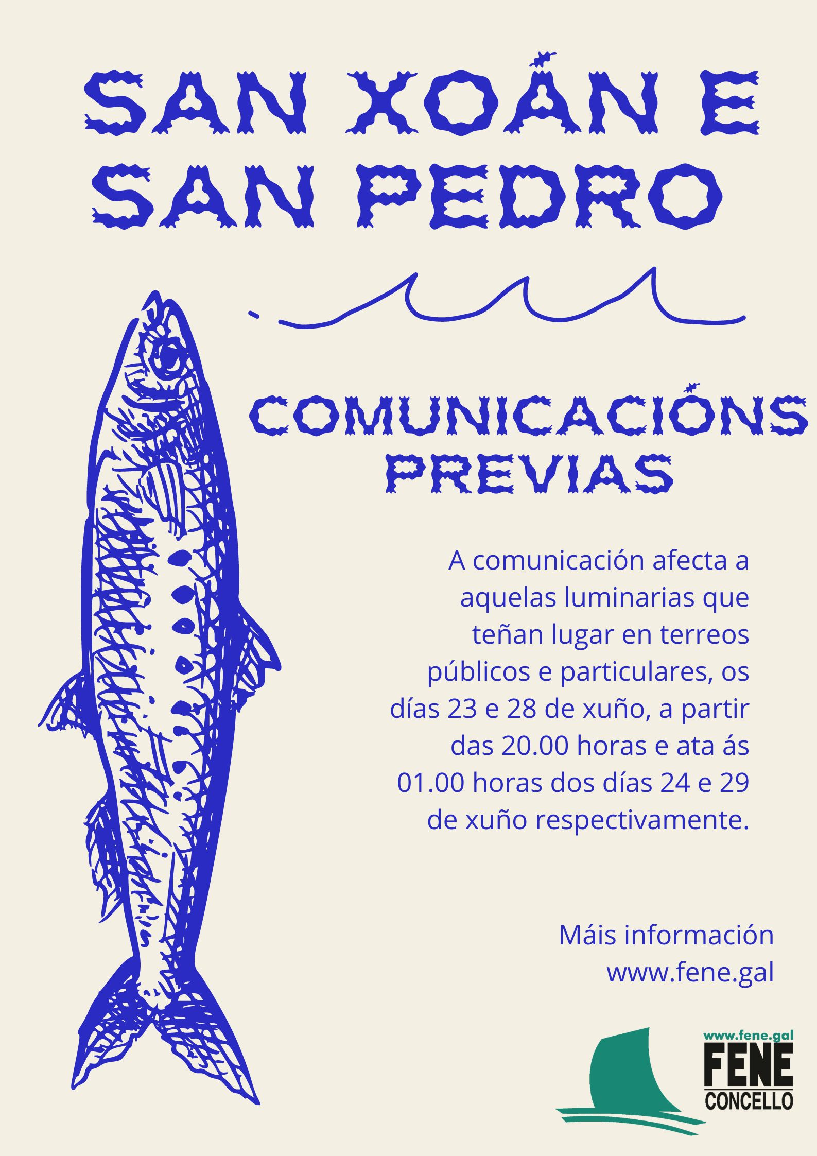 Estas COMUNICACIÓNS só se poderán presentar no Rexistro Xeral do Concello ou no Rexistro electrónico desta entidade, por persoas maiores de idade, ata ás 14.00 horas do 22 de xuño de 2023. As luminarias poderán realizarse únicamente os días 23 e 28 de xuño e as súas respectivas madrugadas dos días 24 e 29 de xuño respectivamente.
