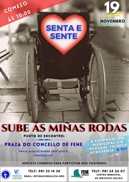 Dadas as limitacións do número de cadeiras de rodas dispoñibles para a realización da actividade, a selección das persoas participantes, realizarase por rigorosa orde de inscrición. O período de inscrición xa está aberto, até as 14:00 horas do martes 16 de novembro. Pode realizarse por teléfono (981342607) ou tamén directamente no Centro de Servizos Sociais.