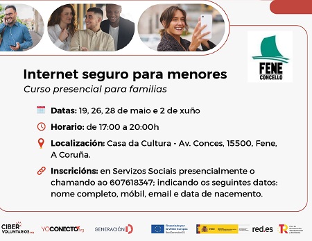 O concello de Fene en colaboración coa Fundación Amigos de Galicia organiza un cursos de formación en competencias dixitais para maiores de 60 anos, entre as datas comprendidas do 5 e o 26 de maio de 2026 .