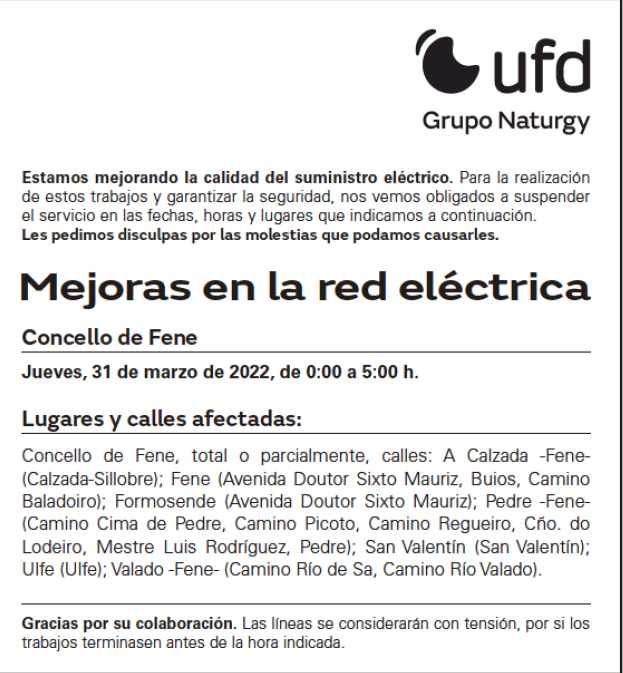 Aviso corte rede eléctrica