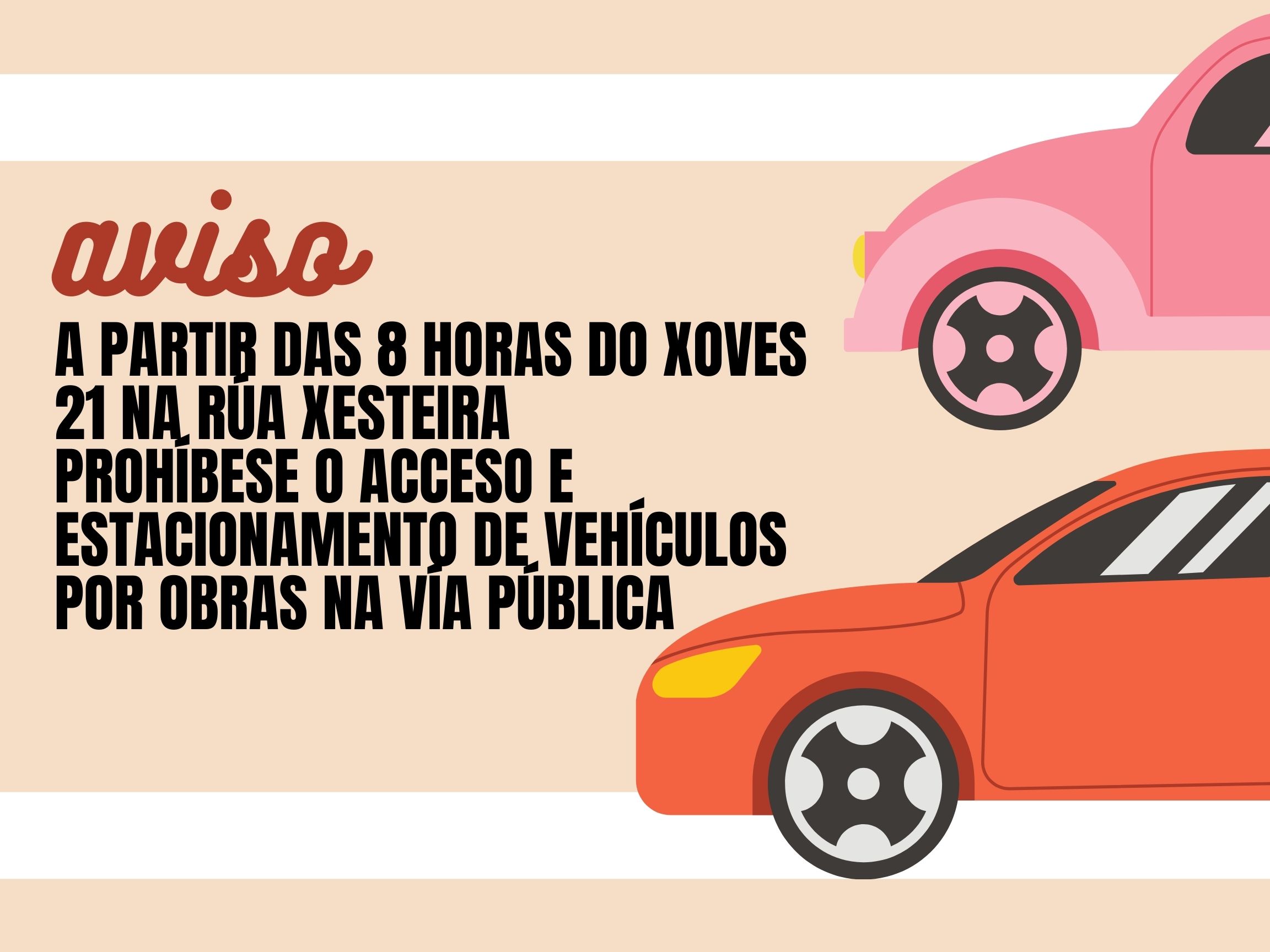 A partir das 8 horas do xoves 21 na rúa Xesteira prohíbese o acceso e estacionamento de vehículos por obras na vía pública