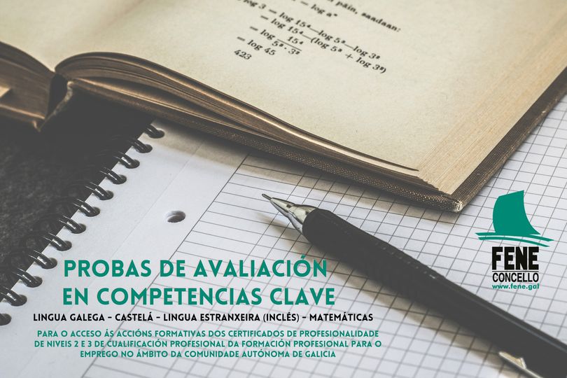 O Servizo de Orientación laboral do Concello de Fene informa sobre as PROBAS DE AVALIACIÓN EN COMPETENCIAS CLAVE para acceder aos certificados de profesionalidade de nivel 2 e 3