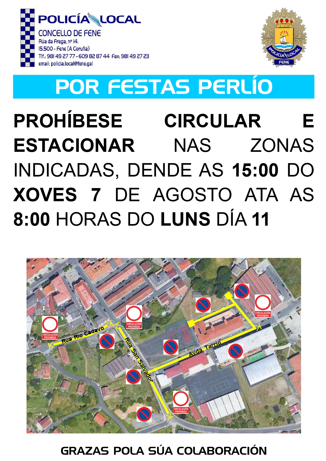 Restriccións tráfico por mor das Festas de Perlio