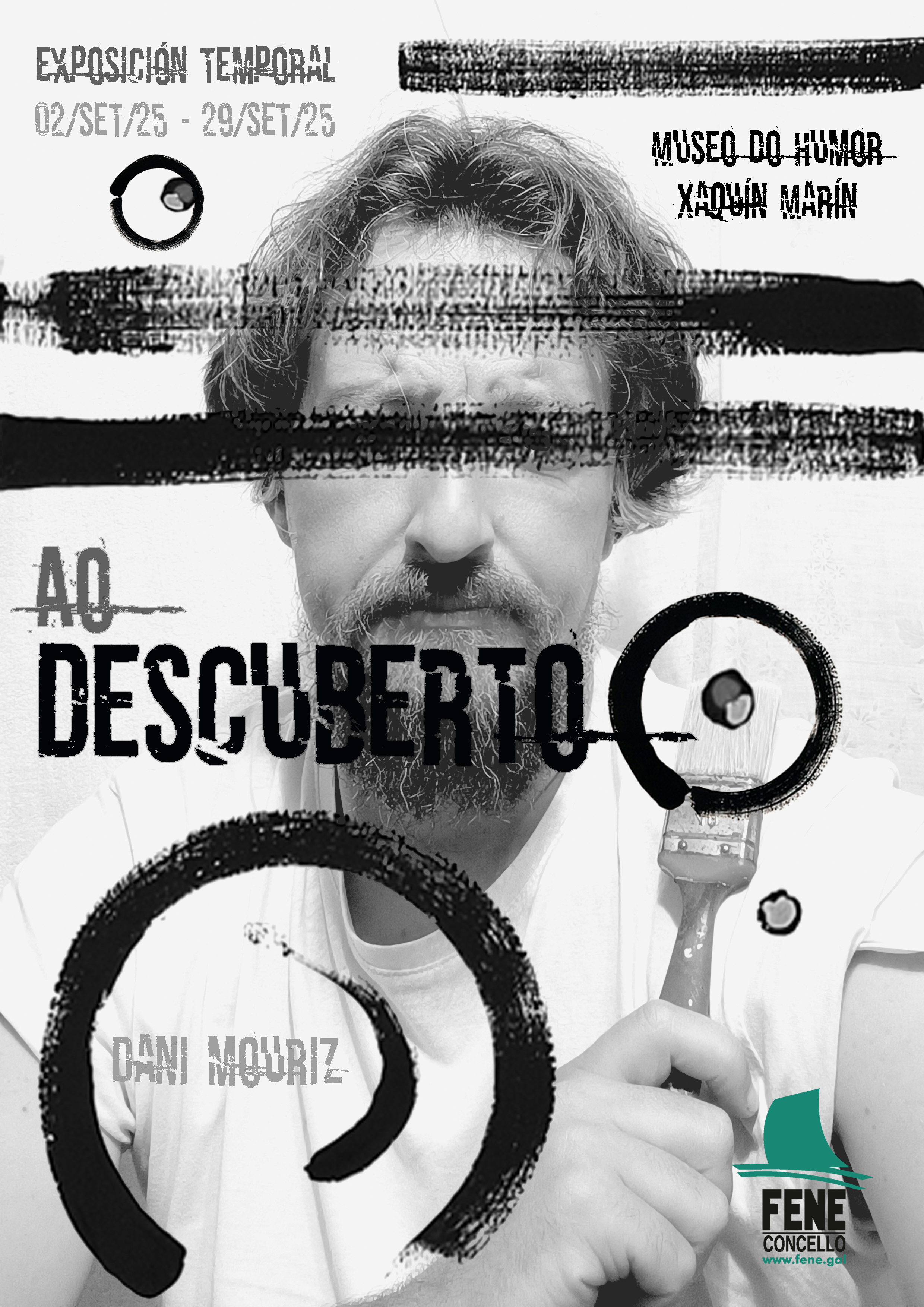 “Ao descuberto” é o título da exposición que o pintor ferrolán Daniel Mouriz amosa desde este martes na Casa da Cultura de Fene. A mostra recolle máis de 50 obras nas que o autor desprega a súa visión abstracta da realidade, a través de estruturas expresionistas e surrealistas. Nalgunhas obras, aplícanse elementos minerais e vexetais, así coma materiais reciclados, tales coma papel, cartón, madeira, plástico, principalmente sobre lenzo, pero tamén sobre vidro e cartulina montada en cartón pluma.